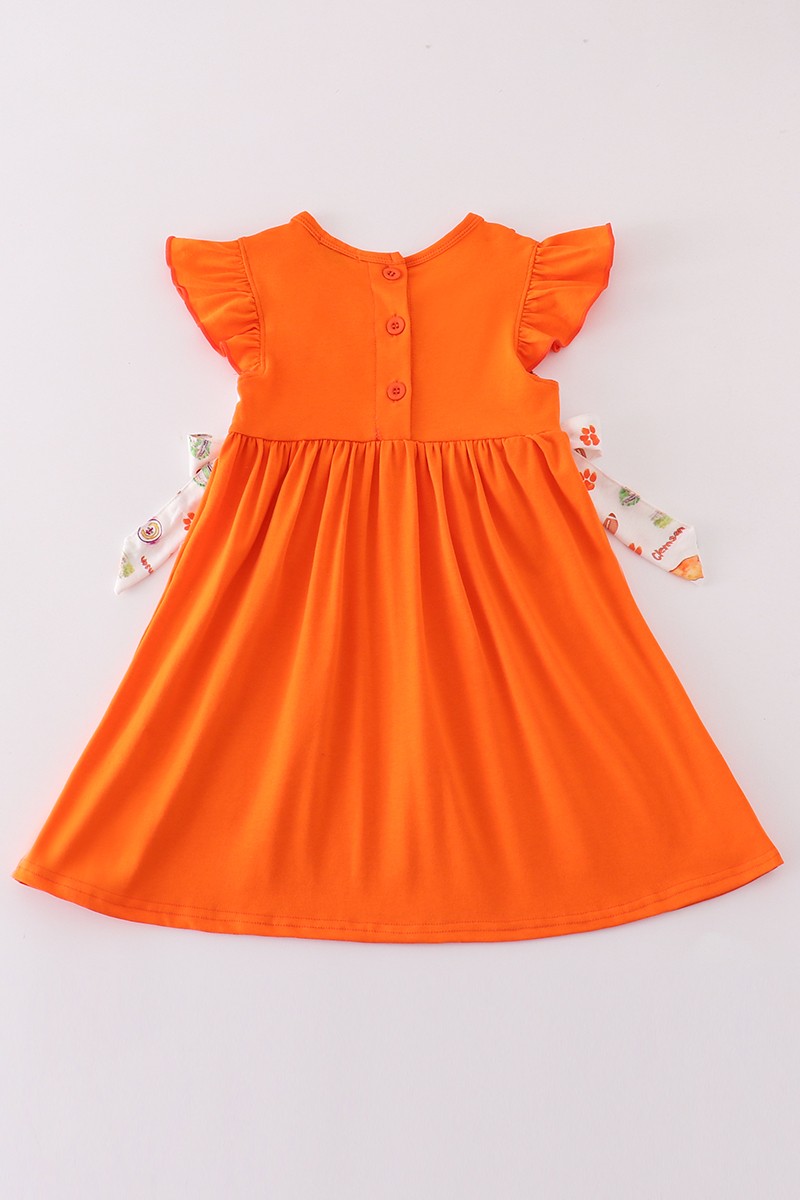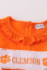 Orange clemson embroidery girl dress